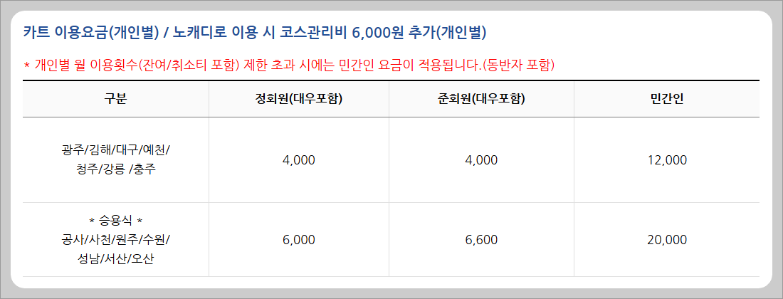 | 골프장 (18홀) | 35,000원 | 50,000원 | 80,000원 |