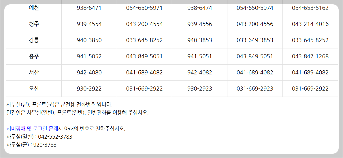 공군 체력단련장 홈페이지 이용 시 주의사항