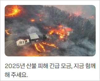 이 산불피해 긴급모금에 많은 분들이 동참해 주신다면 산불로 인해 심각한 재해를 입고 힘들어하시는 분들께 온정의 손길을 전할 수 있을 것입니다. 재해를 입으신 분들이 하루빨리 일상으로 돌아올 수 있도록 우리 다 같이 마음을 모아보면 어떨까요. 더 많은 분들이 따뜻한 마음을 모아주셨으면 하는 바람입니다.