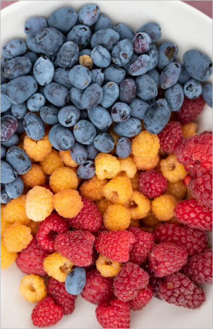 블루베리, 라즈베리, 딸기 등의 베리류는 항산화 물질과 비타민 C가 풍부합니다. 이들은 콜라겐 생성을 촉진하고 기존의 콜라겐을 보호하는 데 도움을 줍니다.