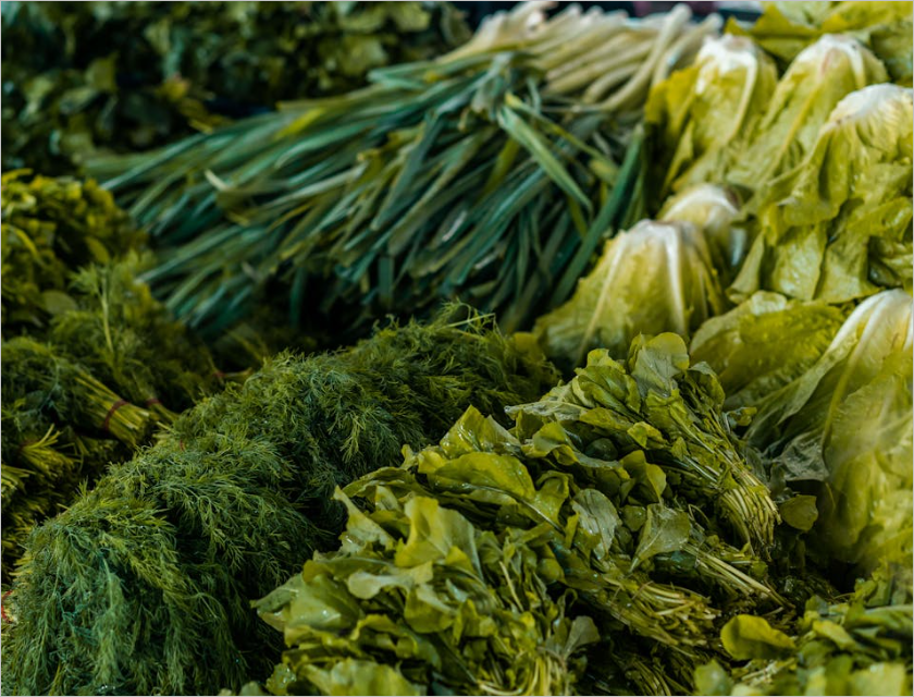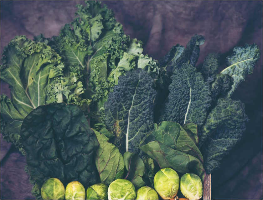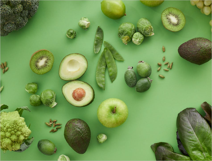 시금치, 케일, 브로콜리 등의 녹색 잎채소는 비타민 C와 클로로필이 풍부합니다. 클로로필은 프롤린 생성을 증가시켜 콜라겐 합성을 돕습니다.